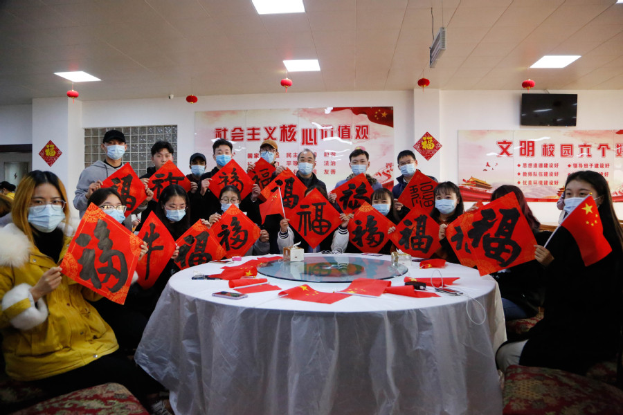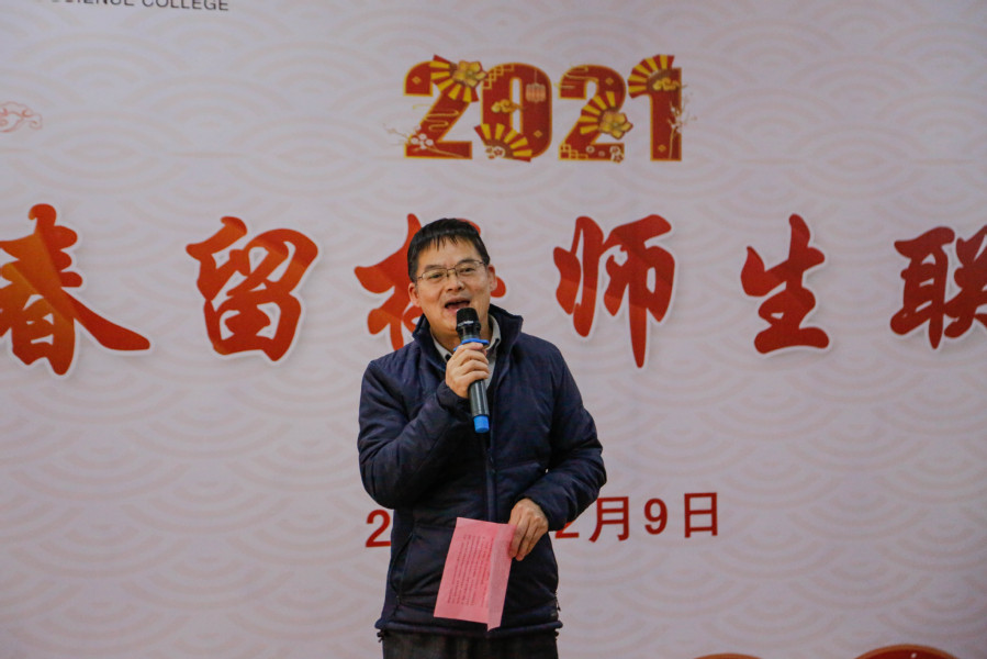 活动期间,冯锋代表全体校领导和教职工向留校师生致以最真诚地祝福,希望新的一年所有教师能够工作顺利、事业有成,所有同学学习进步、幸福安康。留校教师代表黄评脩、学生代表郝玉凤、留学生代表方月沙分别致辞。