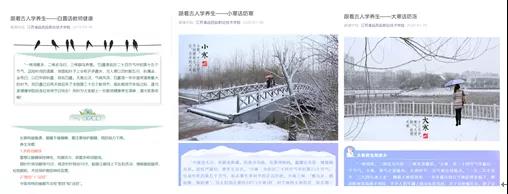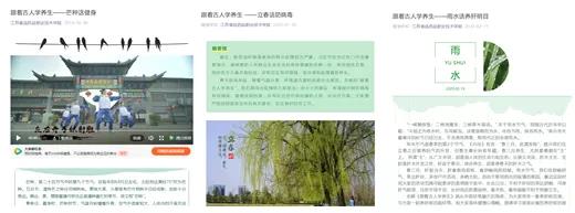 《跟着古人学养生》专栏的推文都是层层把关,多次修改完善后推出的。文章素材选择方面,遵循时间原则,以二十四节气为时间节点,以中医学专业知识为基础,选择与师生关系密切、关注度高的文章素材。文章标题制作上,标题与文意相符,题文统一,长短适当,准确、具体、生动。文本内容的撰写,采用短句子,短段落写作结构,便于读者利用碎片化时间阅读。策划、撰稿、编辑人员不但有较高的专业素养,熟悉文字编辑、图片处理、视频制作等基本业务,同时也具备较高的思想政治觉悟,明确自身的责任和使命。