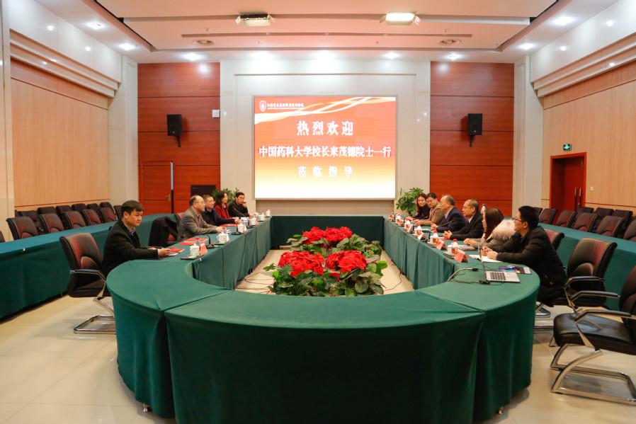 3月6日,中国药科大学校长来茂德一行来访澳洲10手机版,校党委书记陶书中、校长冯锋热情接待了来宾。