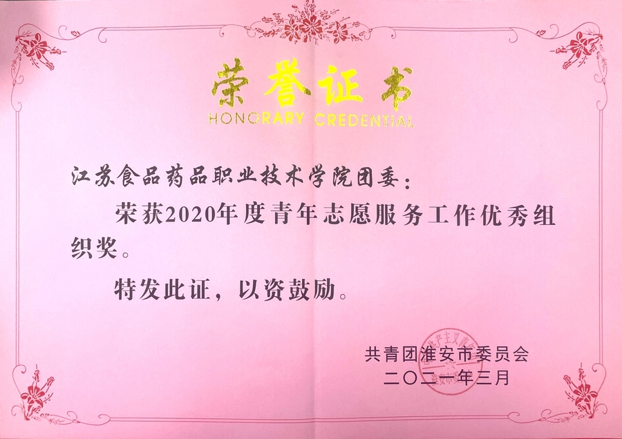 在庆祝建党100周年之际,共青团淮安市委公布的2020年度淮安市先进工作单位和先进工作者评选中,学校团委荣获2020年度青年志愿服务工作优秀组织奖。