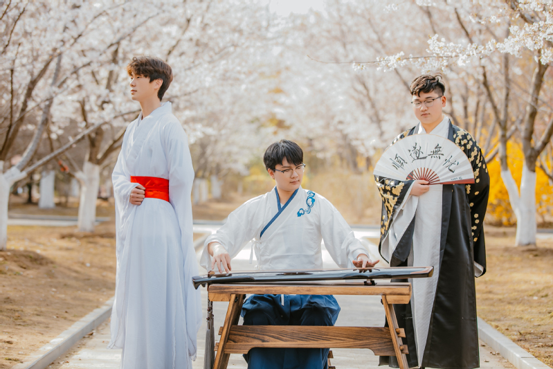 活动现场古乐袅袅,一曲《关山月》古朴苍茫,身着汉服的同学们轻舒广袖,吟诵对春天的赞美。漫步校园,连翘、桃花、海棠花竞相绽放,嫣然一片绚烂的鲜花海洋,吸引广大师生驻足拍照。淮安电视台还对活动进行了专题采访。
