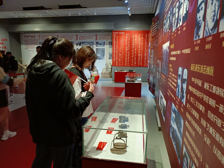 师生们怀着崇敬之情参观了纪念馆内一个个复原场景、一件件陈旧实物、一幅幅珍贵照片,聆听了一段段当年新四军一往无前的英雄事迹以及与人民群众血肉相连的动人故事。师生们有感而发,选取不同场景,深情歌咏“唱支山歌给党听”,抒发爱国之情,表达向党之志。活动最后在“缅怀历史、铭记党恩,修心守正、一马当先”的齐声口号声中落下帷幕。