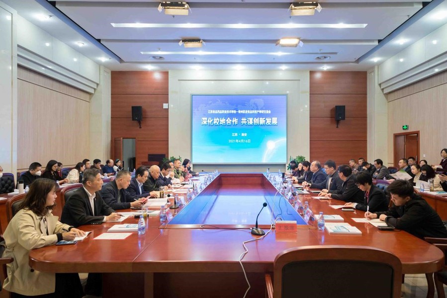 4月16日,常州市武进区工商联、常州市武进区科学技术局、武进食品业商会代表一行来访澳洲10手机版,开展了“深化校地合作,共谋创新发展”为主题的食品科技成果对接会。校领导陶书中、冯锋、翟玮玮,科技处、食品学院、食品药品研究院、校食品科技团队的负责人出席会议。会议由副校长翟玮玮主持。