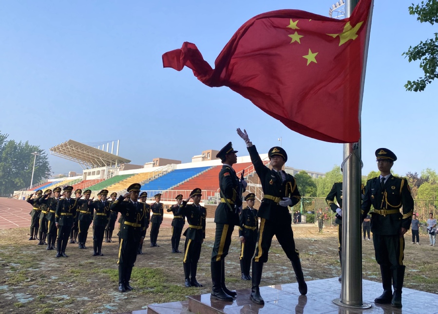 6点50分,意气风发的国旗护卫队着装一致,迈着铿锵有力的步伐,护送鲜艳的五星红旗走向国旗台。伴随着激昂雄壮的国歌声,鲜艳的五星红旗冉冉升起,迎风飘扬。全体师生肃立,向国旗行注目礼,高唱国歌,向伟大祖国母亲献上最诚挚的敬意。药学院团总支书记朱春杉以《青春向党 奋斗强国》为主题做国旗下演讲,她倡导大家作为新时代的新青年,要认真学习党的光辉历史、感悟党的初心使命、领会党的创新理论、体认党的精神谱系、传承党的红色基因,从党史里汲取力量,坚定不移听党话、跟党走,弘扬“三牛”精神,不负青春韶华。