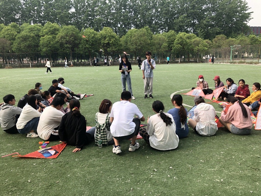 参加手绘风筝环节的同学们,以建党100周年为题,现场构思,进行创作。他们一起讨论党史的标志性事件,附上自己对党的祝福,拿起画笔,蘸上颜料,充分发挥想象力和创造力,现场绘有天安门广场、国旗、国徽等图形。同学们将手绘风筝摆出 “中国共产党党徽”、“100”、爱心形状等造型,借“520”这个特殊的日子,在建党100周年之际,表白对党炽热的爱。活动中还开设了党史知识问答,围绕学习党史、新中国史、改革开放史、社会主义发展史“四史”为内容展开,具体形式以抢答题为主。活动现场,大家围绕坐在一起,脸上神情专注,气氛热烈,不时传来欢声笑语,在保持趣味性的同时进行了党史知识的比拼。