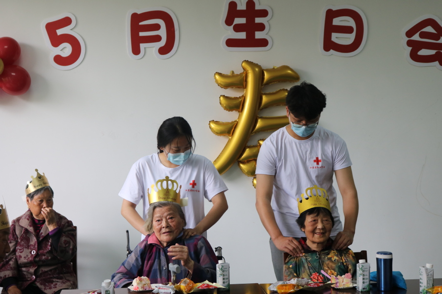 尊老敬老是中华民族传统美德,为弘扬爱老、助老的良好社会风气,5月18日,健康学院志愿者来到市福利院,为5月份过生日的寿星们举办集体生日会。
