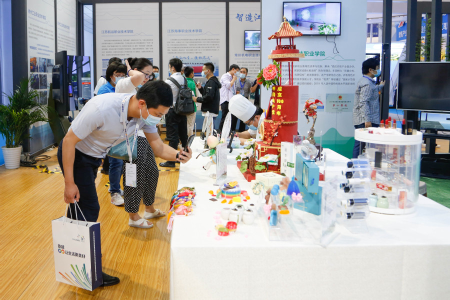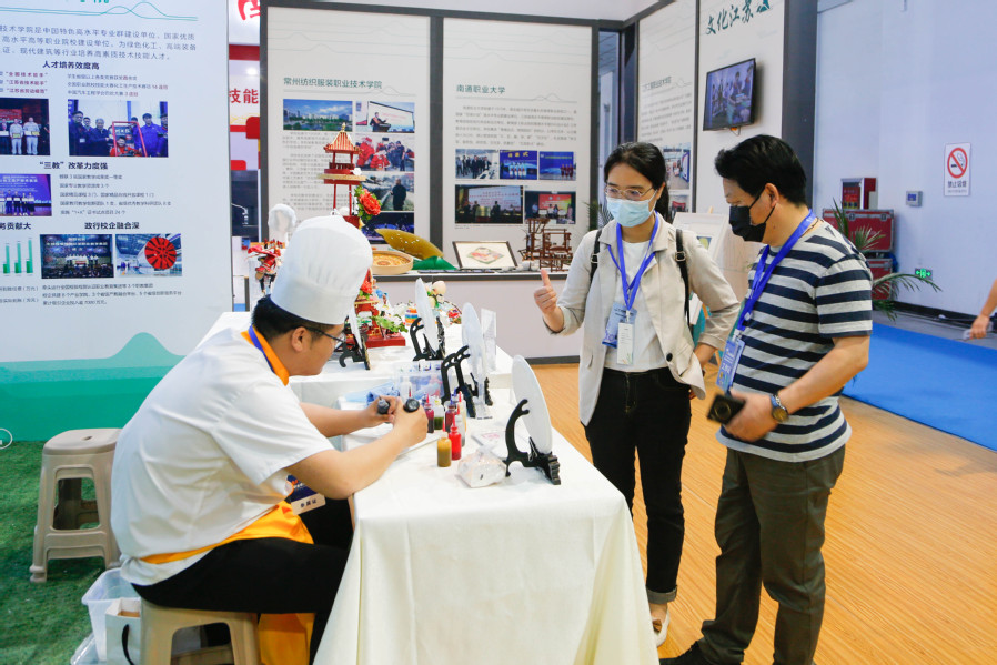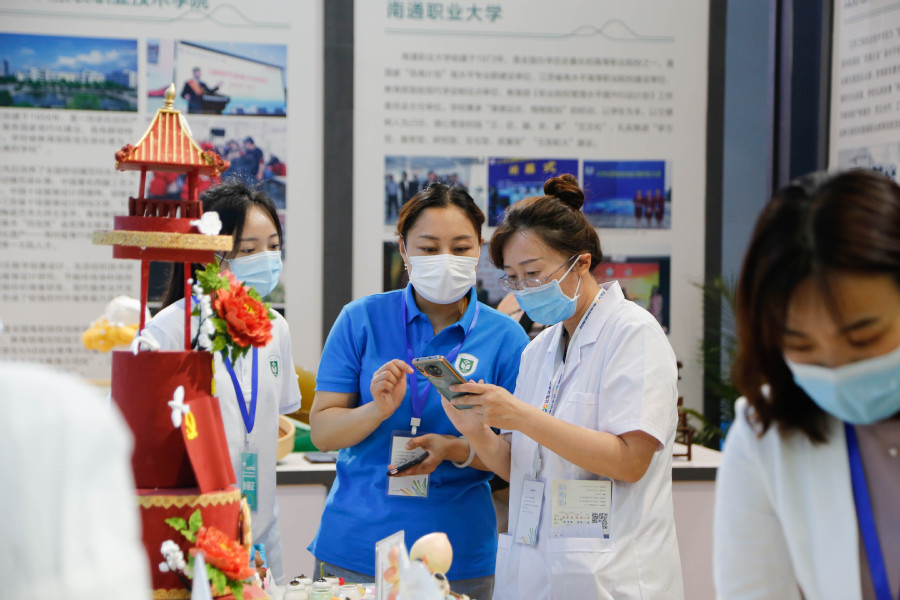 经过前期省内高校技能展示项目比拼,学校药妆、中药茶饮、面塑、果酱画等技能脱颖而出,于江苏馆核心位置展示,在启动仪式当日吸引了众多高校专家、各教育厅领导、师生等驻足欣赏、合影、留念。来自山东省教育厅的两位领导在药妆展示台前咨询,大力称赞澳洲10手机版创新创业工作;各省属高职校专业教师纷纷在周干老师果酱画展示台前驻足,领略传统技艺、感叹卓越技能、称赞校园美育。同时,学校还通过图片、文字、讲解、操作等,集中展示了学校在加快建设职业教育创新发展高地,立足新发展阶段、贯彻新发展理念、服务国家大健康发展格局的积极作为和创新实例。