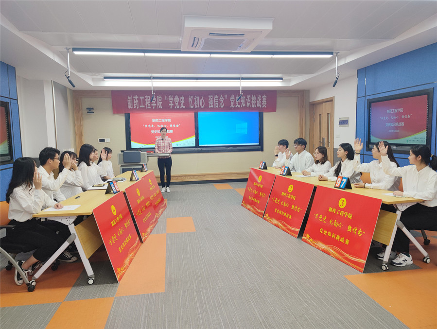 党史如明灯,照亮新征程。为扎实推进党史学习教育,5月25日下午,制药工程学院学生党支部开展了“学党史 忆初心 强信念”党史知识竞赛活动。比赛依托“腾讯会议”平台开通网络直播,近百名党员、入党积极分子通过现场和线上两种方式观看比赛。活动由制药工程学院辅导员朱鸿英主持。