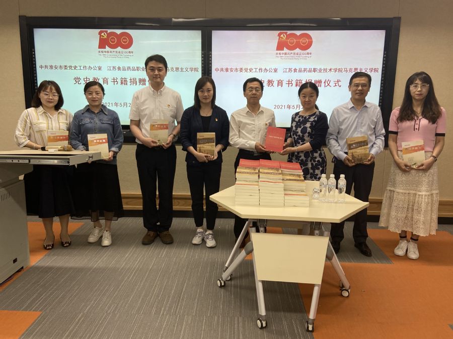 市党史工办向马院赠送了《中国共产党淮安地方简史》《实录淮安——土地革命战争史》《实录淮安——改革开放史》三类系列党史书籍共计70本。
