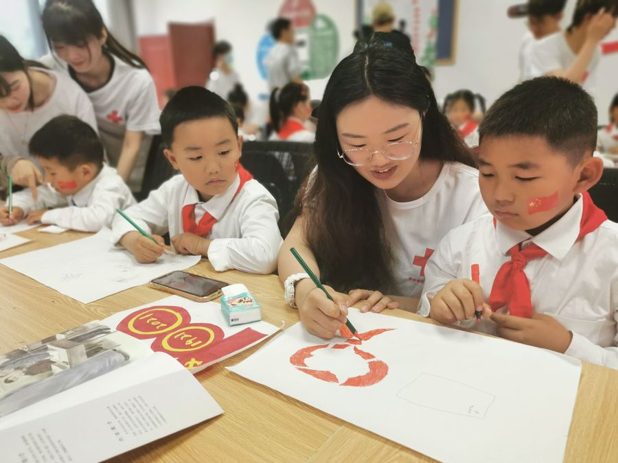 绘红色故事,周总理我想对您说。周总理的故事让小朋友们受益匪浅,他们用文字和拼音完成的一段段温暖的话语,表达对总理的崇高敬意。志愿者带来了笔墨纸砚,手把手教孩子们写下“为中华之崛起而读书”。此外,志愿者们还准备了“党徽”、“海棠花”、“恩来画像”等手绘素材,并结合素材为孩子们介绍其相关知识,孩子们拿起画笔描绘着。他们用认认真真完成的一幅幅作品,向周总理表达自己爱国爱党情怀,绘出自己对祖国对党的情感。“我们要学习周爷爷‘为中华之崛起而读书’的精神,努力学习,做一个对社会有用的人。”活动结束,小朋友们感受很深的讲到。