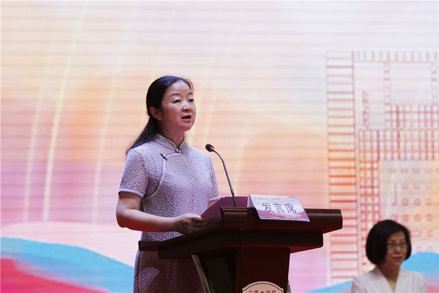 “进校时你们是懵懂无知的青葱少年,转眼你们已成为即将步入社会的追梦青年。”药学院周宁老师作为教师代表发言,她希望毕业生们能够怀揣感恩、诚实守信、永远勤奋,做一个对社会、对他人有益的人,一个理性而追求至善的人。