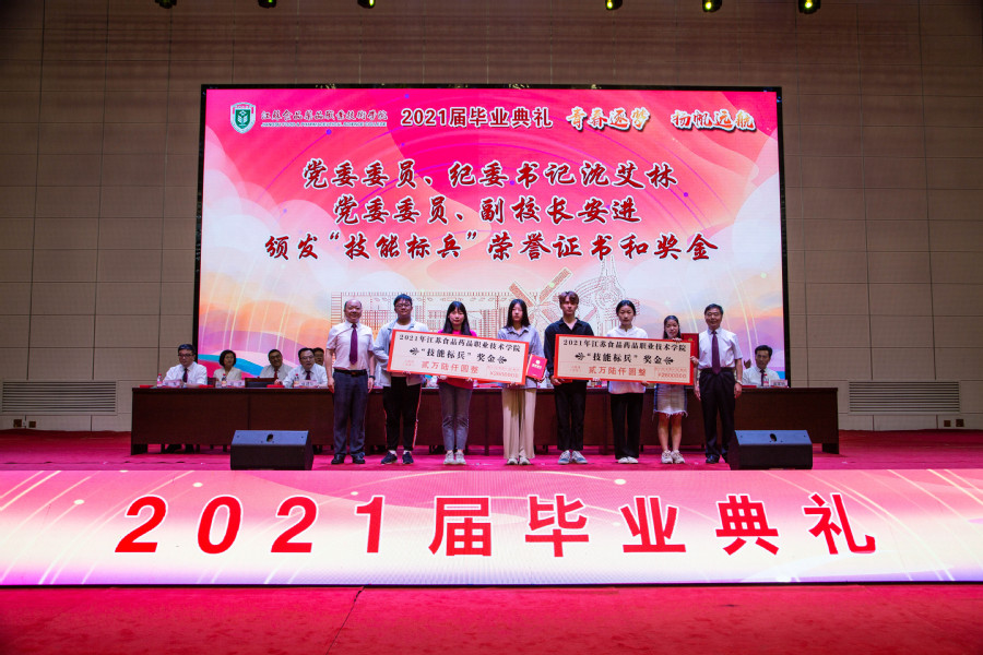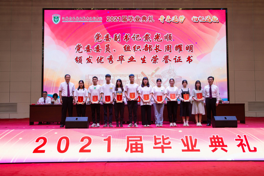 校领导将荣誉证书颁发给每一位优秀毕业生,鼓励他们在未来的工作岗位上勇于创新、持续创优。今年还新增了技能标兵的表彰环节,纪委书记沈艾林、副校长安进为在全省技能大赛获得一等奖的两个团队颁发了荣誉证书和奖金,为他们取得的荣誉喝彩。