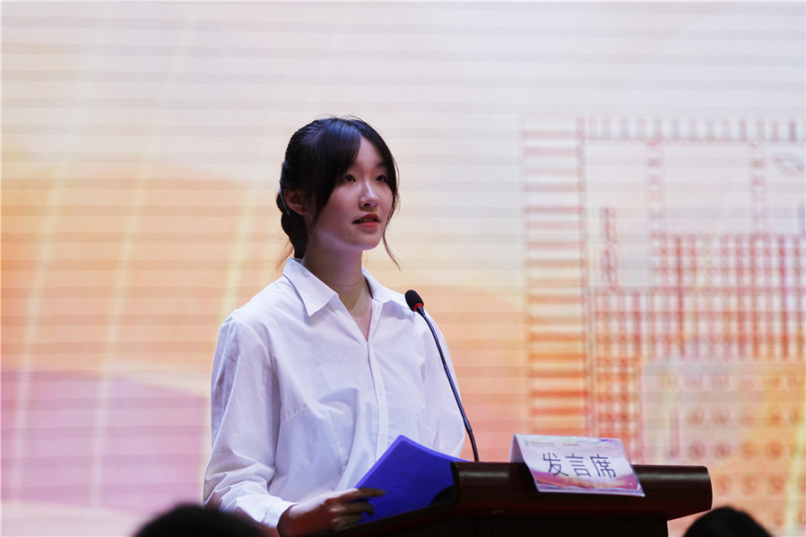 “经历大一的纯真年代,告别大二的紧张与忙碌,我们来到了今日大三的依依别离。” 健康学院体育181班韩宗谕代表全体毕业生发言,她表示三年大学时光已化作无形胶片,将永远珍藏在脑海中,感谢母校的关心、教育、辛劳、鼓励,激励着每一位毕业生在社会的风浪中勇敢前行。