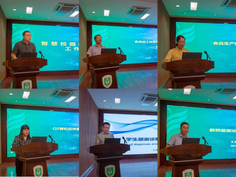 之后,专家组副组长李振陆教授主持诊改汇报环节。校长冯锋从总体建设情况、两链打造、螺旋运行、平台建设、引擎驱动、成效与思考,六个方面对学院诊改工作总体情况进行了汇报。专业负责人、课程负责人、人事处处长、学生处处长、现教中心主任,分别对专业、课程、教师、学生和平台建设作了汇报。