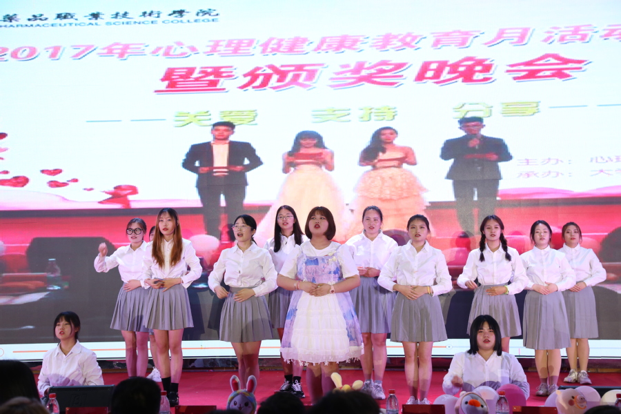 晚会在大学生心理协会乐队和制药学院乐队带来的精彩歌曲《一吻天荒》和《活着》中拉开帷幕。随后,大屏幕上播放了“5·25我爱我”心理健康教育月系列活动短视频,向大家集中展示了澳洲10手机版心理中心及各二级学院开展的“5·25我爱我”心理健康主题教育活动。整场晚会节目形式多样、精彩纷呈,除手语操和小品等心理健康主题教育系列活动的表演外,还有校自管会和各二级学院推选上来的积极健康的歌曲、舞蹈等节目。晚会中间,出席本次活动的嘉宾还为主题活动中表现优异的同学和指导老师现场颁奖。晚会最后在大学生心理协会手语操《和你一样》的表演中圆满落幕。