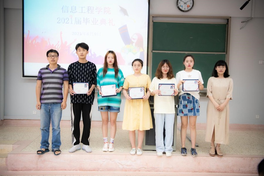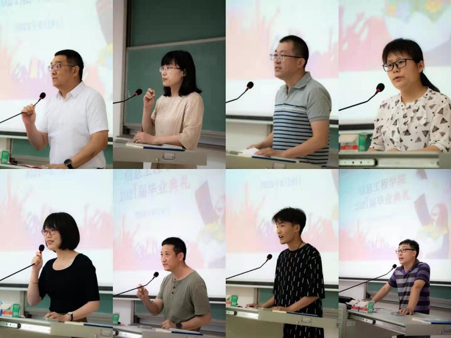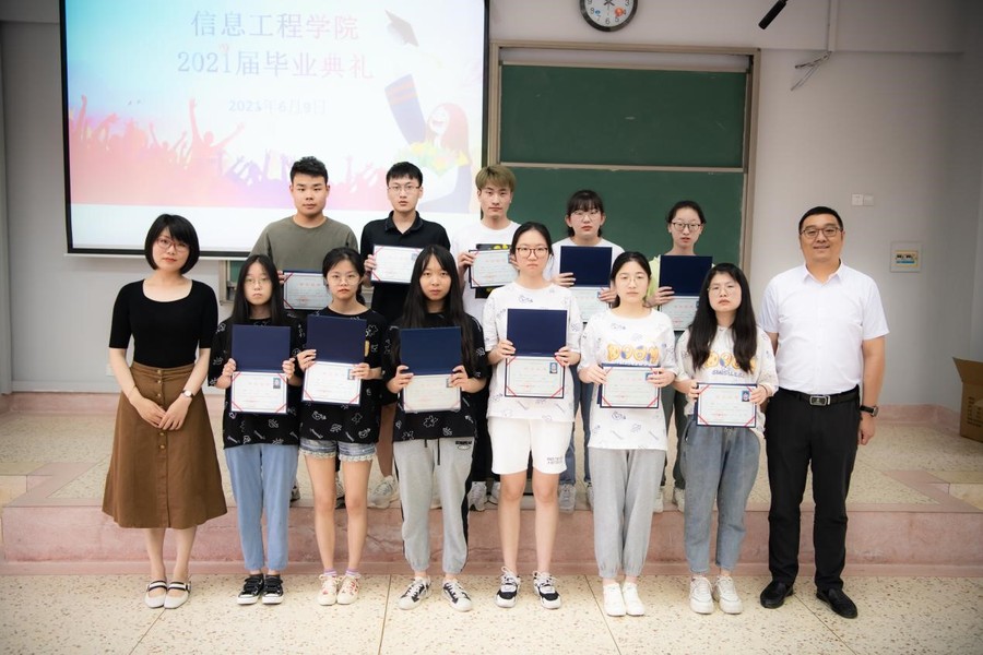 6月9日下午,信息工程学院2021届毕业典礼暨话别会在教学楼B108教室如期举行。院领导张丹、刘玲、张政以及毕业班班主任、辅导员和任课老师参加了活动,与所有毕业生相聚一堂,共同见证、分享这一重要时刻。典礼由副院长张政主持。
