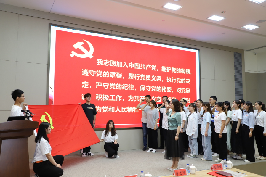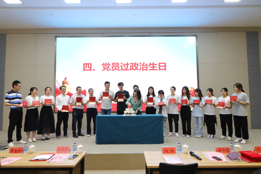 随后,经纬以井冈山精神为题为师生上了一堂专题党课,号召所有同志以实际行动将井冈山精神发扬光大。为引导大家自觉牢记党员身份,双方领导共同为两个支部6月份入党的20名同志送上了镌刻有红船精神的政治生日贺卡,希望所有同志能够时刻不忘初心、牢记使命。党员代表依次分享了自己的生日感悟。药学院党总支副书记龙婧婧同志进行总结发言,对江苏康缘营销后台党支部同志的热情接待表示感谢,期待双方在支部共建及校企合作方面取得实效。最后,所有党员面对党旗重温入党誓词。