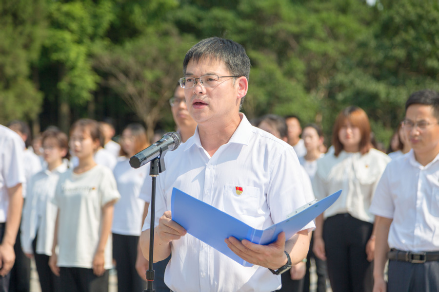 陶书中向新党员表示祝贺。他说,在党的百年华诞即将到来之际,来到烈士陵园开展集中宣誓活动,既是对中国共产党建党100周年的隆重纪念,也是对新老党员的一次深刻党性教育。希望全体新党员,要继承先烈遗志,勇担时代责任,自觉把个人理想、事业追求融入国家富强、民族复兴、人民幸福的历史伟业中。希望全体党员要恪守入党誓言,践行庄严承诺,坚定理想信念,切实把“为共产主义奋斗终身”的誓言,化为脚踏实地的行动;要时刻不忘党员身份,在新形势下、新征程中,用习近平新时代中国特色社会主义思想武装自己,传承红色革命基因,谱写新的瑰丽篇章,为党徽增光,为党旗添彩!