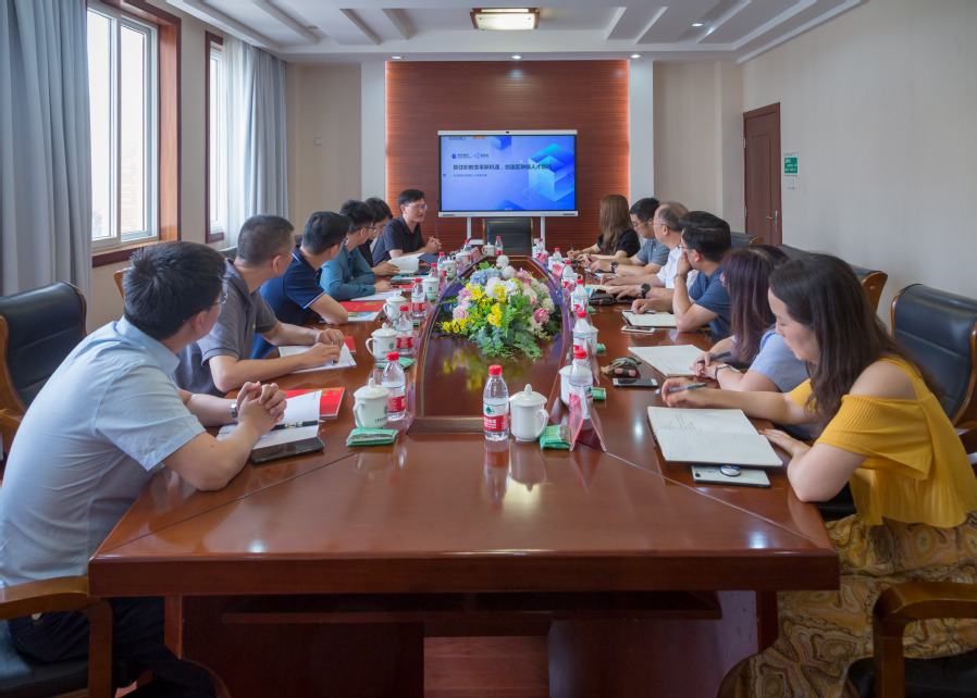 6月28日,杭州蚂蚁链产教融合发展中心林旺、江山等来学校就区块链人才培养促进产业发展主题进行考察交流,校党委书记陶书中出席会议。