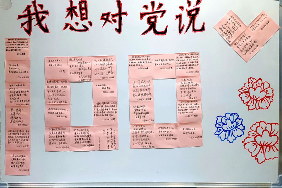 最后,社员们纷纷在“我想对党说”专栏呈上对党的生日美好祝福,并在学校增设的庆祝中国共产党成立100周年的背景前打卡留念。