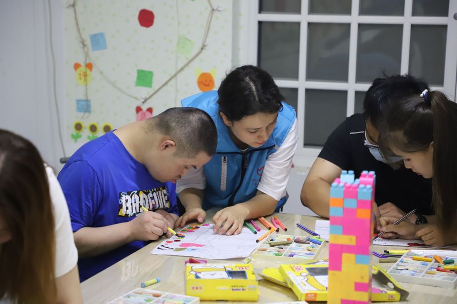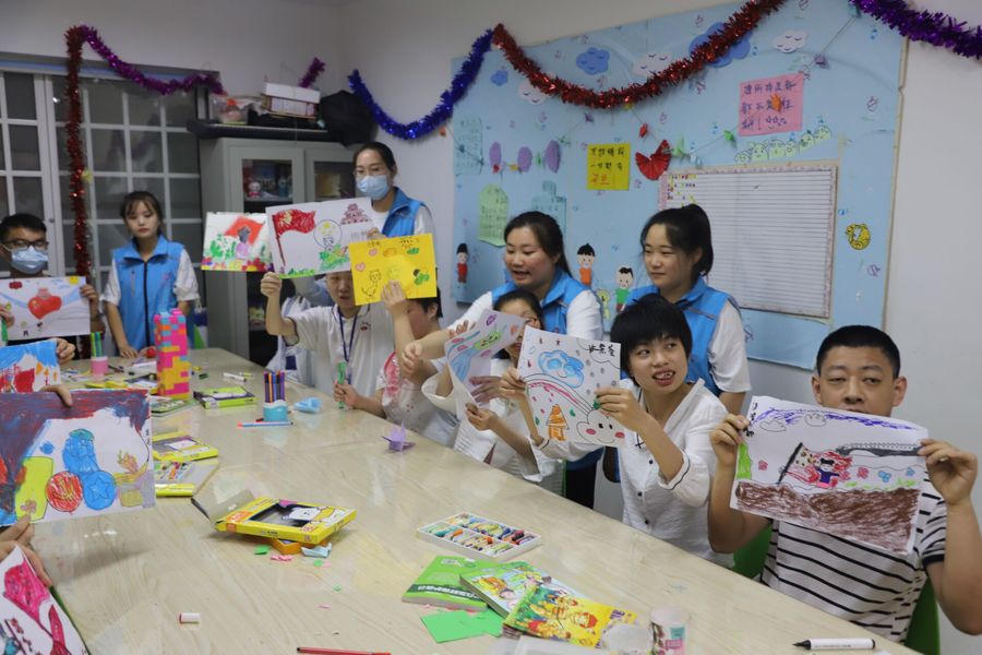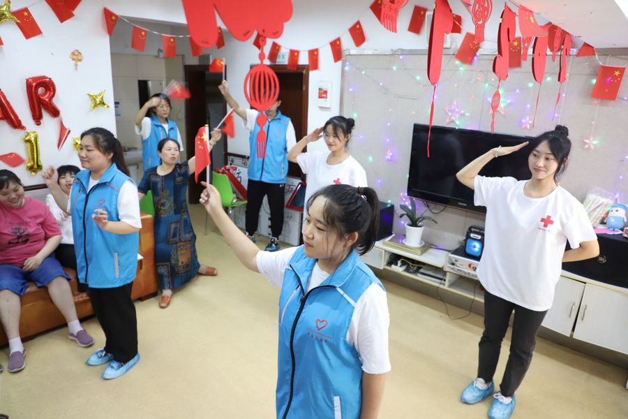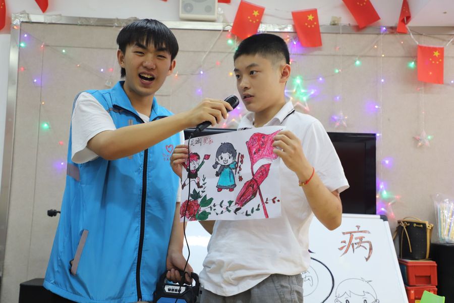 首先,志愿者与残障人士共同制作夏日清凉饮品酸梅汤,同时与他们开展了爱国主题手绘、红色故事分享、折纸、疫情防控注意事项和七步洗手法等一系列丰富多彩的活动;随后,志愿者们为他们带来了精彩的文艺节目,如爱国手势舞、新疆舞等,合唱《我和我的祖国》、《奔跑》、《追梦赤子心》将此次活动推向高潮;最后,志愿者们为他们送去了手持小风扇,一起感受夏日的清凉时刻。