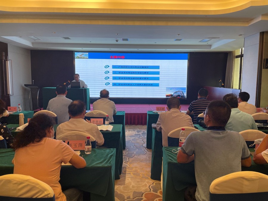 广西农业职业技术大学党委书记杨昌鹏教授做了题为“食品药品类职业本科专业建设的要求与探索”的专题报告,从职业本科专业的办学定位、专业建设基本要求和人才培养方案的制定三个方面进行了介绍。随后,贵州省酿酒工业协会秘书长黄平同志,四川工商职业技术学院副院长王开淮教授,贵州轻工职业技术学院副院长何亚平教授等专家围绕课程思政建设、产业发展现状、现代学徒制人才培养模式探索和“岗课赛政”融合等热点问题进行了经验分享。