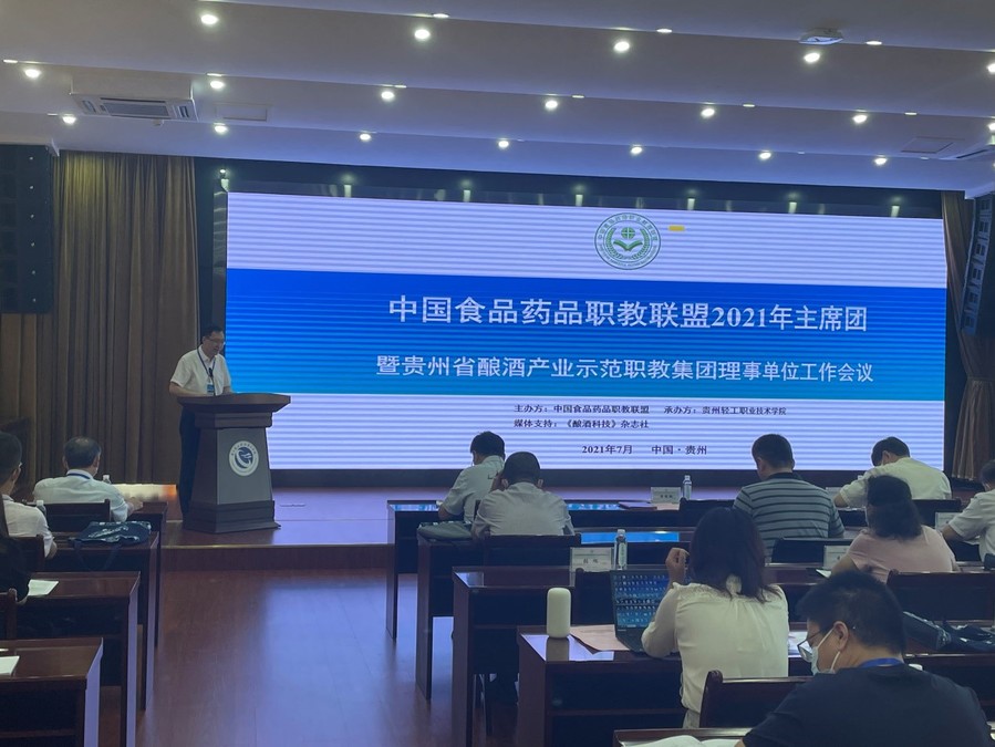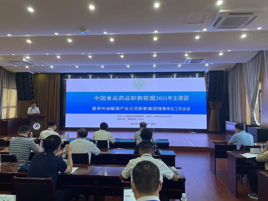 2021年7月30日-8月1日,由中国食品药品职教联盟主办的“中国食品药品职教联盟2021年主席团会议”在贵州轻工职业技术学院成功举行。本次会议以“新时代职业教育本科专业建设实践与探索”为主题,旨在加强中国食品药品联盟成员单位间的合作交流、经验互享,持续推进联盟工作,同时搭建与贵州省知名酿酒企业沟通交流的桥梁,共话新时代深化产教融合,探索职业教育本科人才培养,助推食品药品行业高质量发展。联盟及集团成员单位澳洲10手机版、广东农工商职业技术学院、山东药品食品职业学院、玉溪农业职业技术学院、楚雄医药高等专科学校、湖南食品药品职业学院、厦门海洋职业技术学院、广西农业职业技术学院、漳州科技职业学院、内蒙古农业大学职业技术学院、四川工商职业技术学院、贵州食品工程职业学院、贵州省酿酒工业协会和贵州省内部分酿酒企业等20余家单位代表出席了会议。澳洲10手机版党委书记陶书中、教务处、食品学院、制药学院相关负责人参与了本次会议。