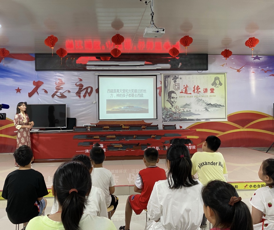 今年是中国共产党成立100周年,志愿者们针对小朋友和青少年开设了党史学习教育专题讲座和少数民族——藏族的文化宣讲。党史专题讲座中,同学们向大家讲解了中国共产党百年光辉历程,通过图片、视频让大家进一步深刻感受到中国共产党带领全国人民实现从站起来富起来到强起来的伟大飞跃。在藏族文化宣讲讲座中,志愿者通过互动提问等方式开展活动,带领大家走进西藏、了解西藏,身临其境的感受藏族的文化习俗,藏族的姐姐们还为在场的同学表演了藏族歌舞,热情的同学们纷纷要和藏族姐姐学跳藏舞,活动在大家的欢歌笑语中结束。志愿者们通过这样的方式引导在场的大朋友和小朋友们要努力学习,为民族团结、为实现中华民族伟大复兴的中国梦而矢志奋斗。