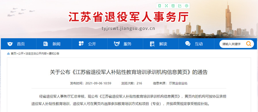 9月6日,江苏省退役军人事务厅公布了《江苏省退役军人补贴性教育培训承训机构信息黄页》,澳洲10手机版获得4项职业技能培训、1项创业培训以及5个成人专科专业补贴性学历教育资格。