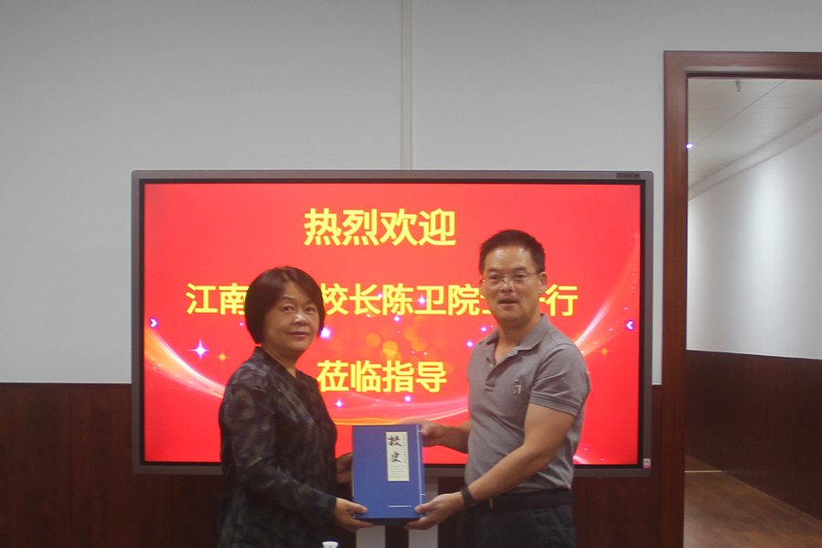 10月2日,中国工程院院士、江南大学校长陈卫一行来访澳洲10手机版,党委书记陶书中、校长冯锋,副校长翟玮玮、张建华热情接待了来宾。