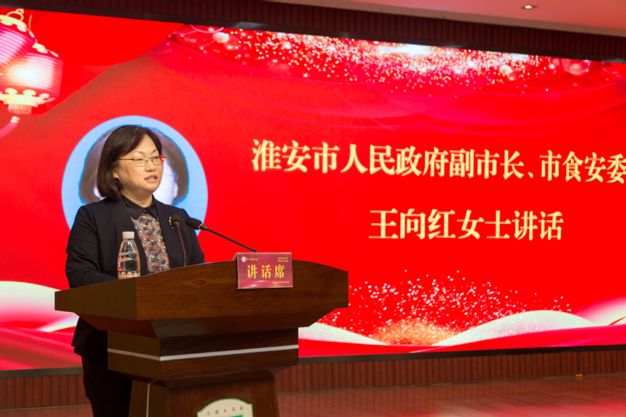 副市长王向红结合淮安市委、市政府的中心工作及食品产业发展需求,对协会今后的发展提出在助力会员发展上更进一步、在提升服务能力上更进一步、在服务地方发展上更进一步、在提高安全保障水平上更进一步的指示和要求,希望未来政府、协会及广大企业能够携手共进,共同传承好淮扬美食,为淮安加快建设“绿色高地、枢纽新城”作出新的更大贡献。