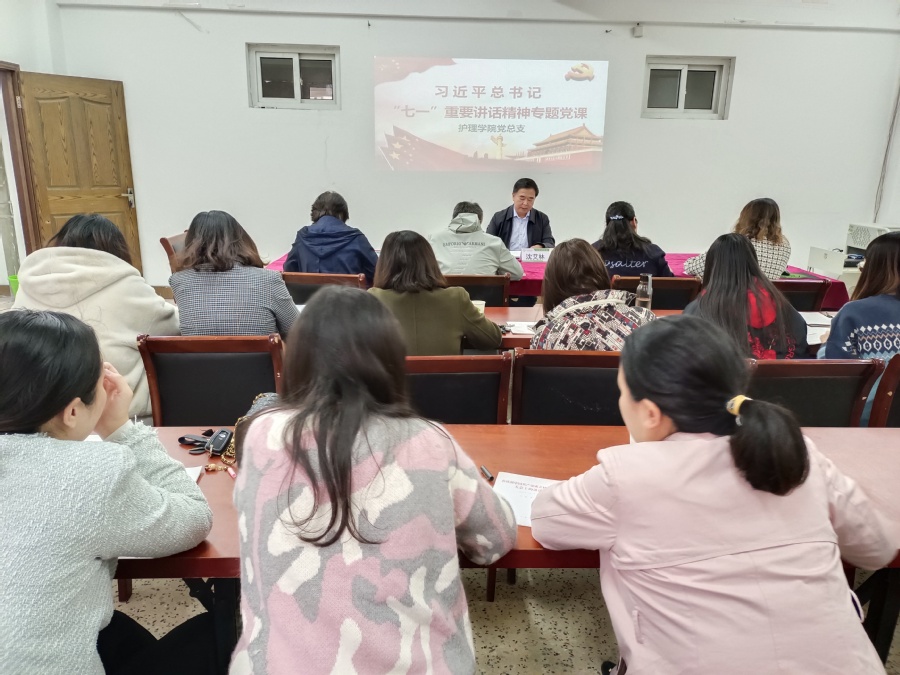 为深入学习贯彻习近平总书记“七一”重要讲话精神,扎实推进党史学习教育,引导广大师生党员坚定理想信念、践行党的宗旨。党委委员、纪委书记沈艾林分别于10月19日下午、10月26日下午深入护理学院和财贸学院,为护理学院党总支、财贸学院党总支师生党员上了一堂关于学习习近平总书记“七一”重要讲话精神的专题党课。