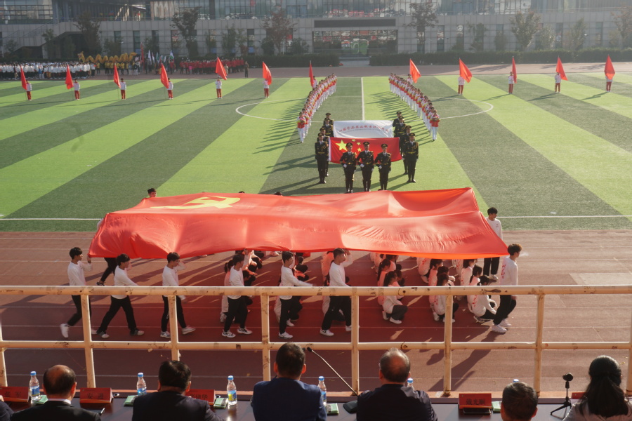 各学院精彩演出结束后,全体师生面向五星红旗奏唱国歌。裁判员代表、运动员代表、留学生代表先后宣誓发言。最后,翟玮玮宣布运动会开幕式圆满结束,运动会正式开始。