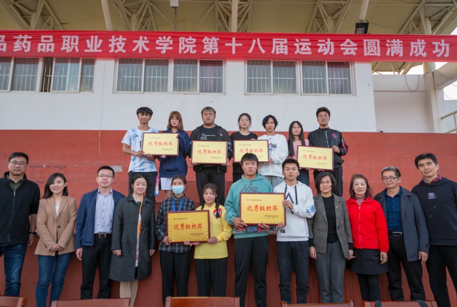 李文生首先宣读了比赛结果。经过激烈角逐,健康学院、药学院、食品学院分别获得女子团体总分前三名,男子团体总分前三名被健康学院、酒店学院、药学院获得,最终健康学院以总分192.5分获得本届运动会团体总分第一名,药学院、酒店学院分别获得团体总分第二名、第三名。随后,与会领导分别为获奖团体颁奖。
