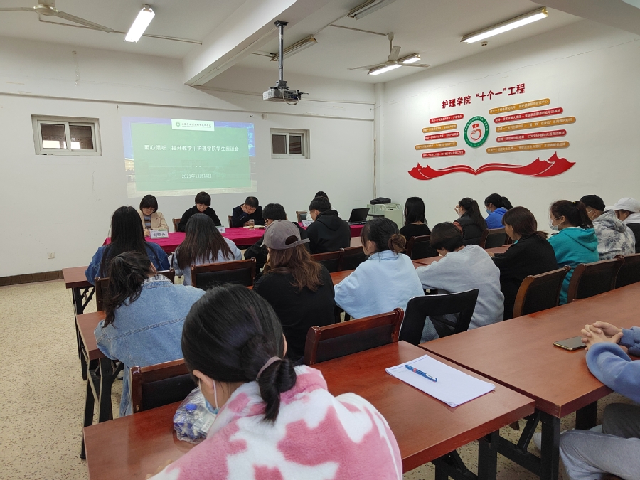 为了解学生对人才培养、教育教学、管理服务等方面的意见和建议,增强学院教学质量和管理服务工作的针对性和实效性,提高护理专业学生的学习热情,11月16日,护理学院在行政北楼C316召开了学生代表座谈会。
