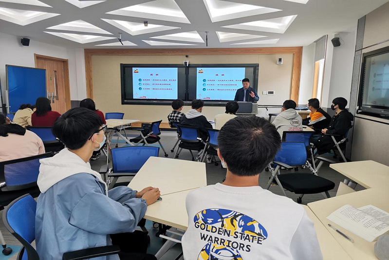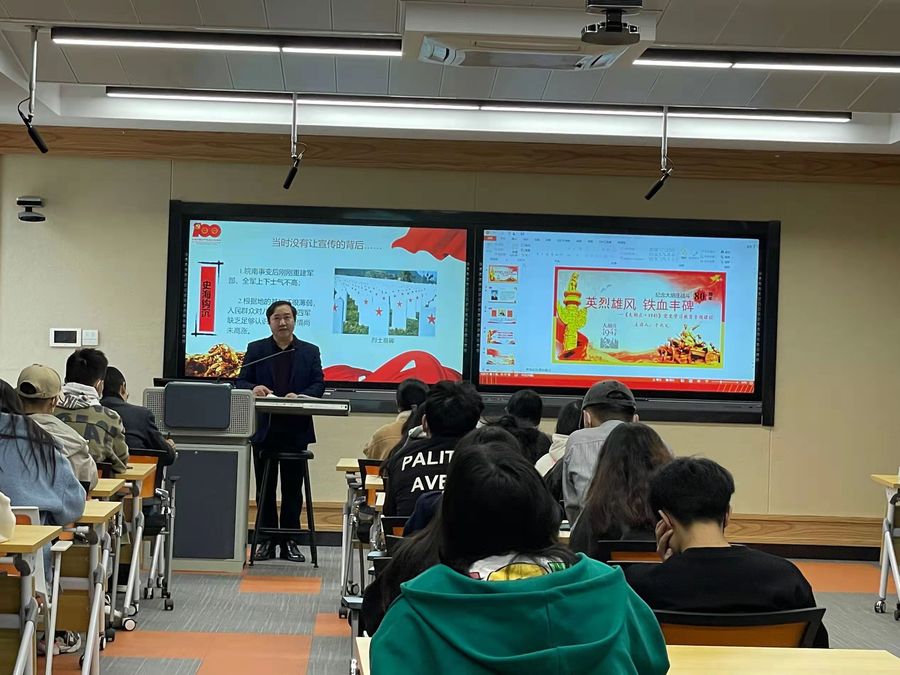 淮安市淮安区委党史学习教育宣讲团成员、淮安区作家协会主席于兆文11月19日应邀来校做“英烈雄风 铁血丰碑”主题讲座。在报告中,于兆文将同学们的思绪带回到了80年前那场非常惨烈的淮安区大胡庄抗日战斗的场景,揭示了大胡庄战斗前后许多鲜为人知的历史故事,阐述了大胡庄战斗的历史价值以及八十二烈士的精神内涵和现实意义。