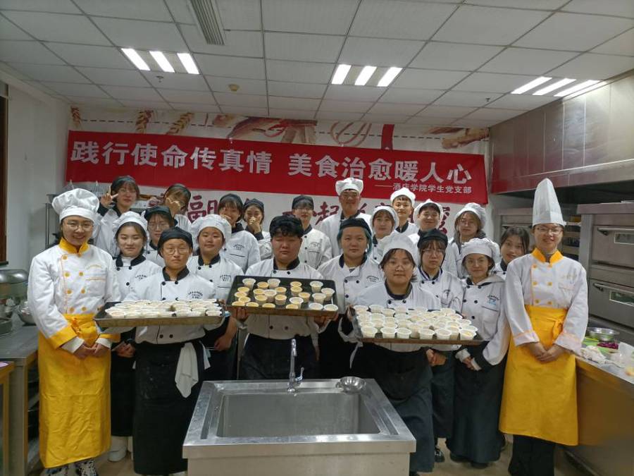 有一种幸福,是一起“烘焙”出蛋糕胚甜蜜的味道,有一种满足是看着那些“折翼天使”们脸上露出甜蜜的笑容。为让中心学员吃到健康又美味的糕点,同学们利用自己的专业知识亲手为残疾孩子们制作蛋糕。走进实训室,室内香味正浓。西餐专业两位指导老师从食材的选则、配比、制作以及烘焙的温度给大同学们做了详细的讲解,随后同学们分工协作,打蛋、分离蛋液、称重、搅拌等按照步骤有条不紊的进行着,在大家的互相协作中一个个小纸杯蛋糕新鲜出炉。看着这些劳动成果,大家都露出了满意的微笑。