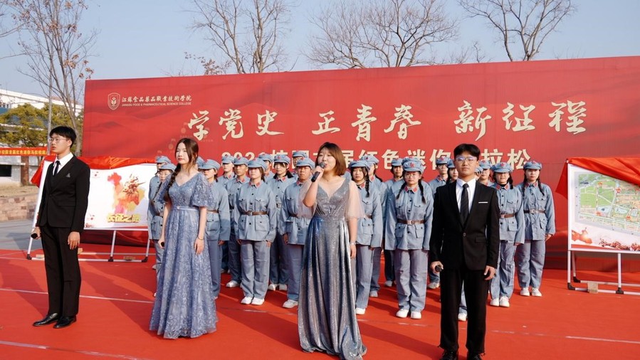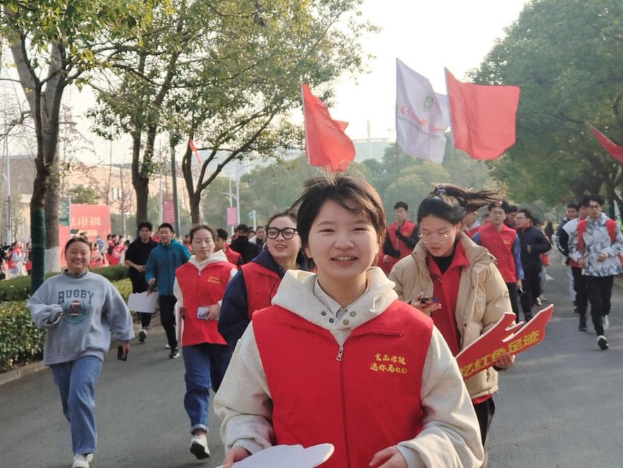 为深入学习党的十九届六中全会精神,进一步巩固党史学习教育成果,探索常态化党史学习教育新形式,食品学院党总支于12月14日下午举行以“学党史.正青春.新征程”为主题的2021校园首届红色迷你马拉松活动。赛程4.5公里,旨在通过马拉松的形式,学习百年党史,传承红色基因,汲取奋斗力量。学校党委委员、副校长翟玮玮以及学工处、团委、体育教学部、食品学院负责人与600余名食品学院师生参加了本次活动。