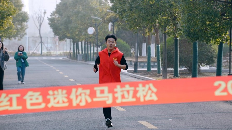 “血战湘江”“遵义会议”“巧渡金沙江”“飞夺泸定桥”“激战腊子口”等这些长征期间的重要事件被分别设置成十一个不同的打卡点分布在红色迷你马拉松的路途中。参赛师生们在志愿者们的引导下,按照路线顺序在打卡点合影,在奔跑中学习党史。终点是标注了象征长征胜利的“会宁会师”,让师生选手们 “沉浸式”体验了红军长征的艰难险阻,学习伟大长征精神,并在党史学习中汲取精神力量、铭记党的光辉历史、传承红色基因。