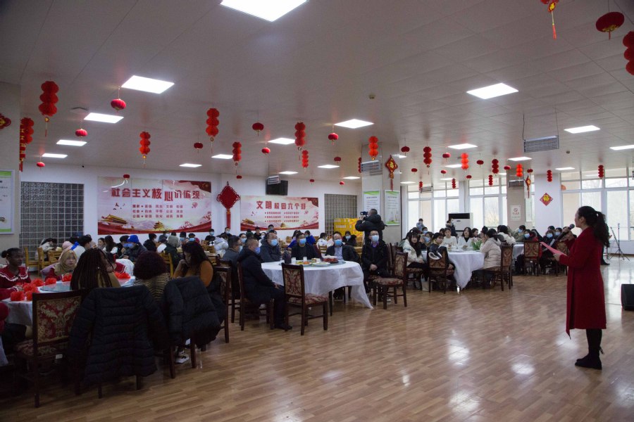 “留在中国,留在淮安过年,很有意思,也很开心!”来自刚果布的罗汀娜是药学专业的大三学生。第三次留在淮安过中国年的她和其他留学生一样,感受着中国春节的传统文化,更感受着学校的温暖。来自青海的安普杰,是大三护理专业的学生。往年都回家过年的他,今年由于实习留在了淮安。第一次不在家里过年的他,在淮安也同样感受着家的味道,“心里很高兴,能有很多人和我一起过年。假期里有老师和同学的陪伴,有家味也有年味。”
