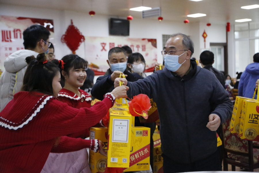 “希望今天的活动,能够缓解大家的思乡思家之情……提前祝愿大家新春愉快、全家幸福、学习进步、万事如意。”校党委书记陶书中的一席话,赢得现场阵阵掌声。学工处处长朱劲松介绍,为了做好100多名寒假留校师生的关爱和迎新春工作,学校特别组织了本次全体留校师生迎新春联谊慰问活动。活动现场,校领导为国外、省外的100多名留校师生发放红包及礼品,和大家同吃团圆饭,共贴“福”字、对联,共看中外学生表演的精彩节目。此外,大年三十和初一,学校还将为留校师生免费提供丰盛的年夜饭。