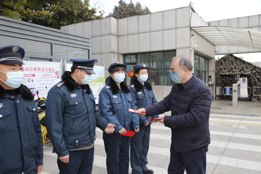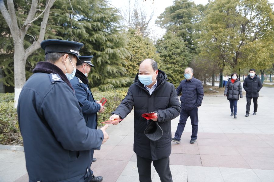 2月1日上午,校党委书记陶书中、副校长安进,亲切看望慰问了大年初一仍坚守在工作岗位的一线教职员工。
