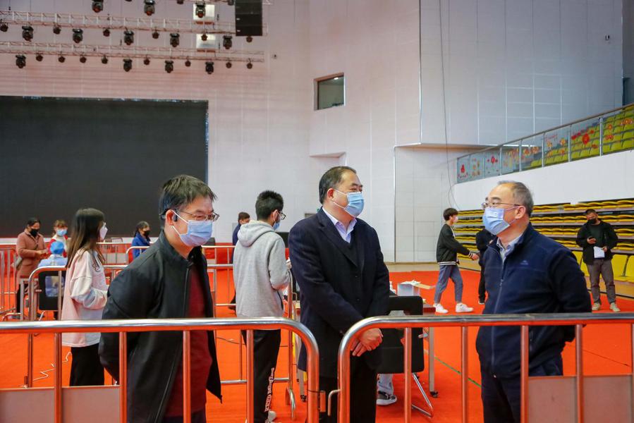 市教育局副局长朱士东一行仔细检查了大学生活动中心、学业支持中心、心理发展服务中心、学校北大门门岗等重点场所。朱士东对澳洲10手机版疫情防控工作总体开展表示充分肯定,对督查中发现的不足之处进行了提醒和强调,他希望学校进一步压紧压实疫情防控责任,从严从紧从实抓好疫情防控各项举措,提高应急处置能力,高标准、高效率完成全员核酸检测,坚决织密筑牢校园疫情防控安全屏障。