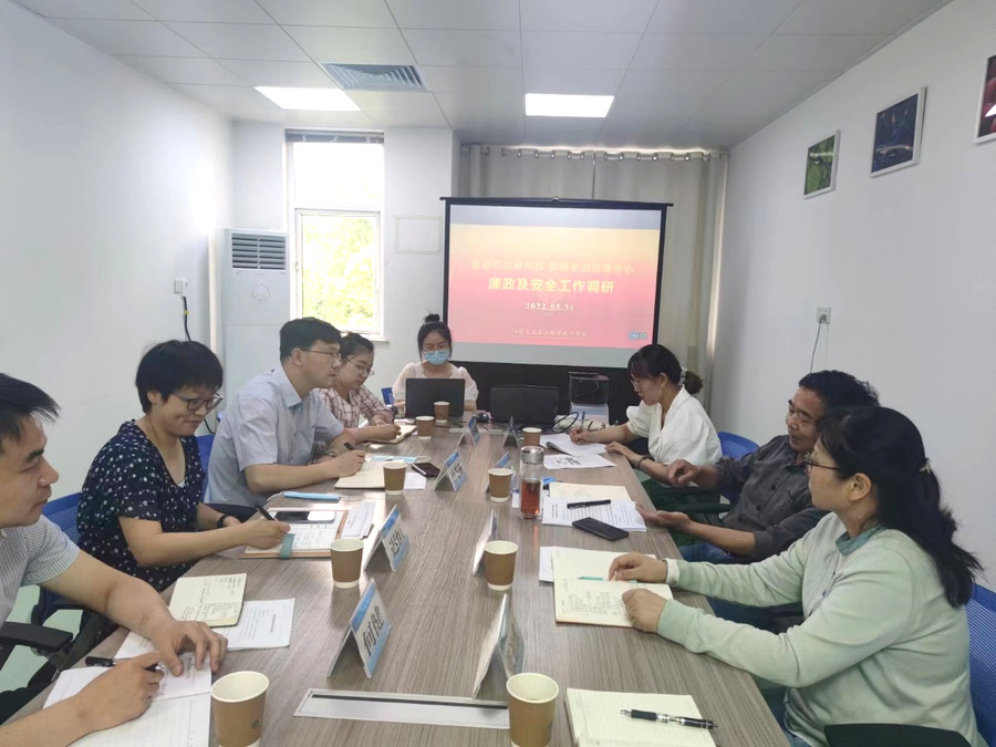 食品药品研究院迟恒院长、马宇春副院长、何健老师围绕党风廉政、安全自查以及研究院开放科研、对外检测,科普宣传等工作进行了汇报。