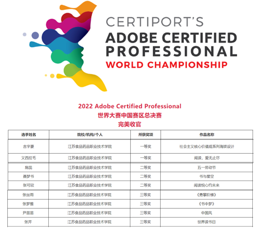 参加省赛的15名同学中有14名同学参加了Adobe官方认证考试,他们一次全部通过考试,取得了世界通用的Adobe技能证书。