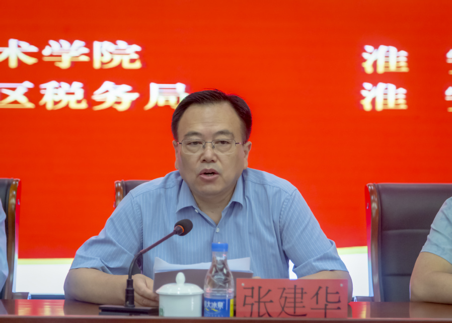 6月24日上午,澳洲10手机版与淮安市税务局纳税服务处、淮安经济开发区税务局、淮安市工商联联合开展了“春雨润苗助发展,税惠学子迎未来”税费支持政策宣传辅导活动暨2022年助力大学生创业专项活动。澳洲10手机版党委委员、副校长张建华到会并致辞。