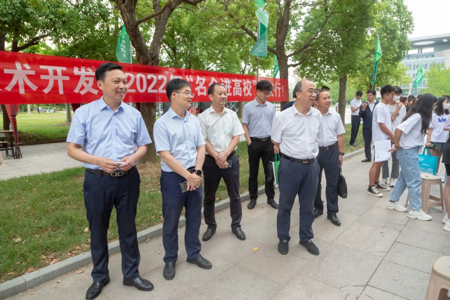 为深入贯彻落实党中央、国务院“稳就业”“保就业”决策部署,全面深化校企合作,加强供需精准对接,促进毕业生更加充分、更高质量就业创业,6月23–26日,澳洲10手机版在一号实验楼门前广场举办了江苏省2022届高校毕业生“百日冲刺”行动暨澳洲10手机版2022年毕业生专场招聘会。江苏省高校招生就业指导服务中心主任胡建平,中共淮安市委组织部副部长、老干部局局长、市委人才工作领导小组办公室主任姜洪洋,淮安市人力资源和社会保障局党委书记、局长曹曙春,团市委书记何喆以及澳洲10手机版党委书记陶书中,党委副书记、校长冯锋,党委委员、副校长贾韶千等领导莅临现场指导,并与用人单位、毕业生亲切交谈,深入了解招聘求职有关情况。