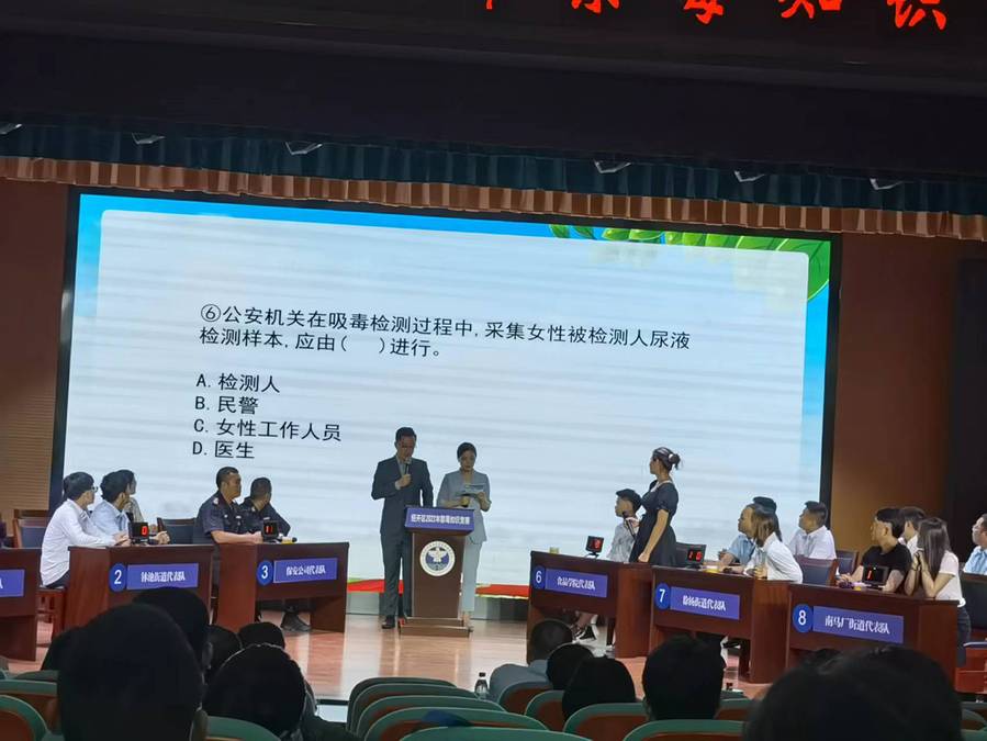 全区有十支队伍:街道办事处、小学教师、大学学生、禁毒志愿者、保安公司等参赛,现场有一百多家企业负责人、大学城高校联络人以及合肥路小学的部分学生观摩。澳洲10手机版的参赛口号“青春赋予你锋芒 别让毒品将其掩藏”,经过两个必答、抢答、选题四个环节角逐,最终在加时赛惜败,获得第三名。