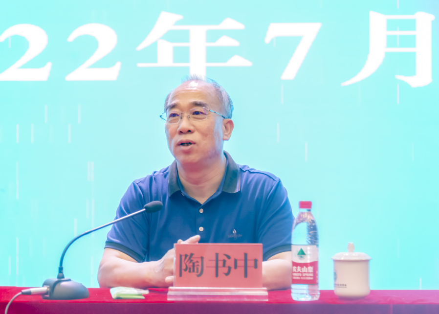 ▲党委书记陶书中主持相关报告会并讲话