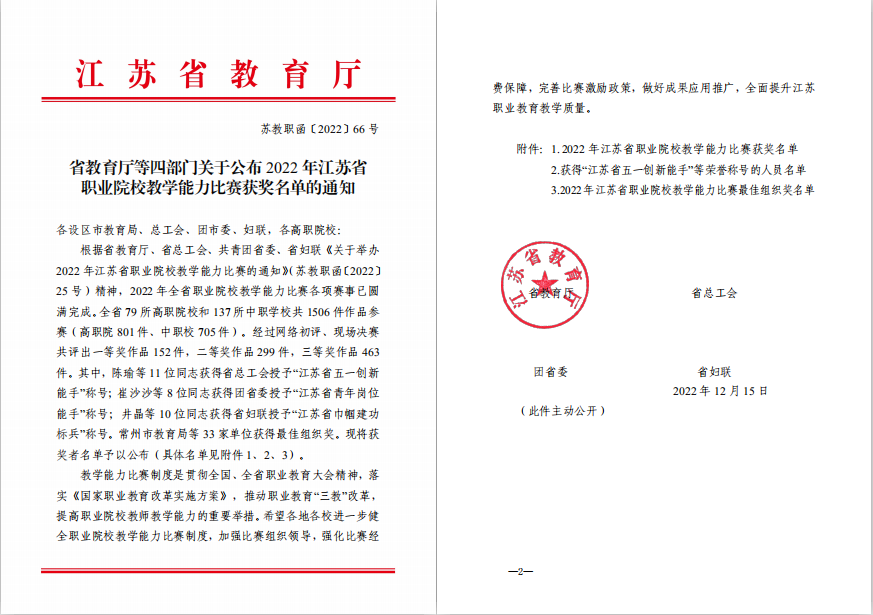 近日,根据《省教育厅等四部门关于公布2022年江苏省职业院校教学能力比赛获奖名单的通知》(苏教职函〔2022〕66号),澳洲10手机版荣获省职业院校教学能力比赛最佳组织奖,这是学校参赛来首次荣获该项荣誉。